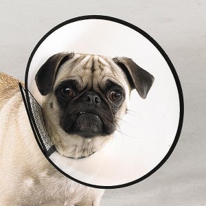 Pitka, знаете когда мне тоже срочно понадобилось такое изобретение, а в вгороде не было мы смастерили еге сами. Голь на выдумки хитра:-)))))))) Купили китайское пластиковое ведро. вырезали дно, сделали дырочки и привязывали к ошейнику. Работает 100% проверенно!!!!!